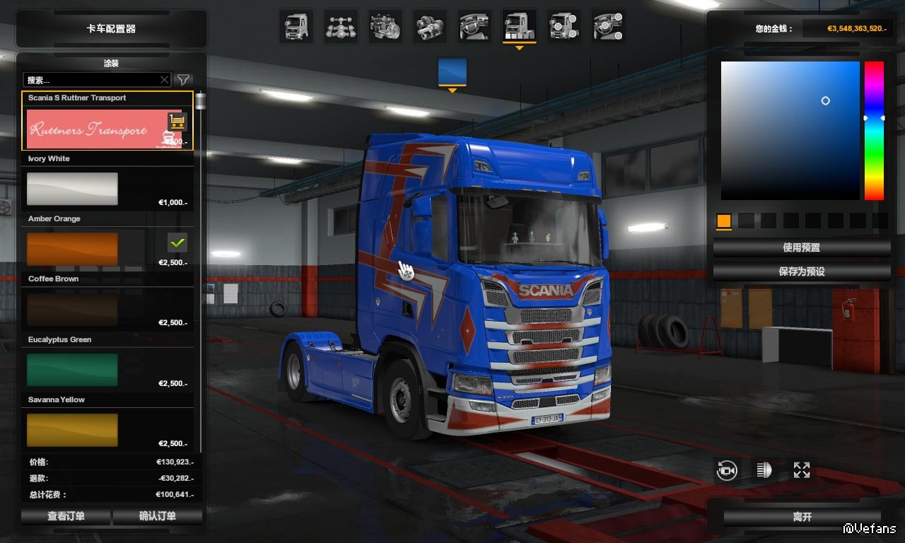 【介绍】:斯堪尼亚S Ruttners Transport皮肤