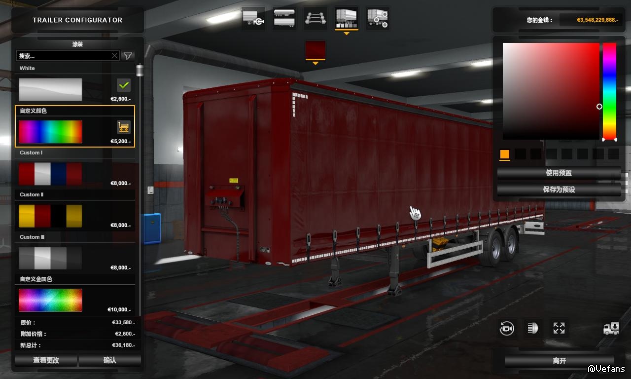 【介绍】:给私人挂车增加了两种自定义颜色,一种是普通喷漆,一种是金属喷漆