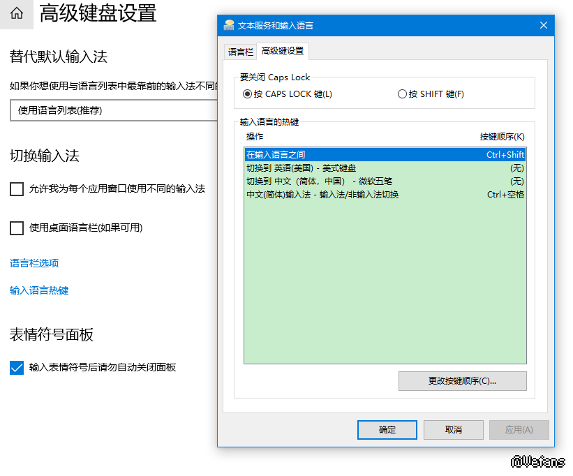 把默认语言设置成英文键盘语言切换键值设置一下!看看什么情况!