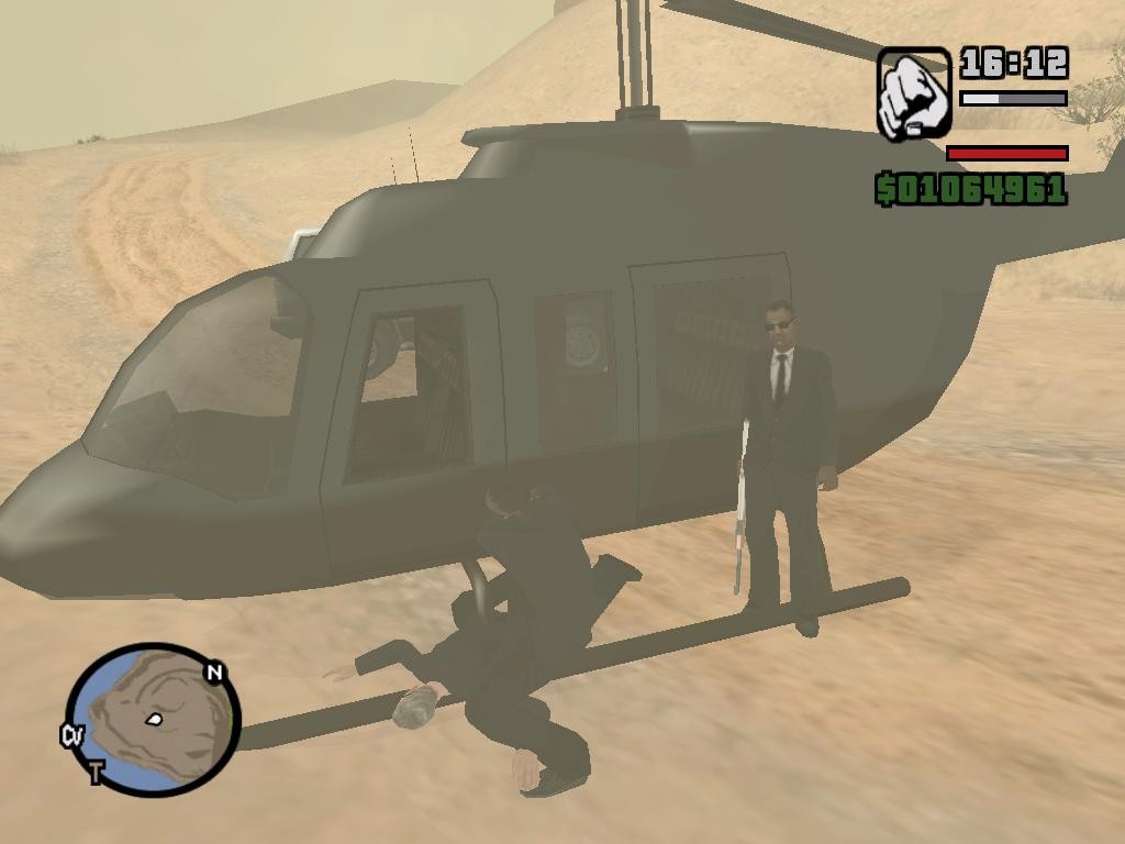 到山顶开始任务后,啥也别管,从口袋里摸出个minigun对准要保护的那架直升机猛扫,把它KO掉,任务因此失败 ...