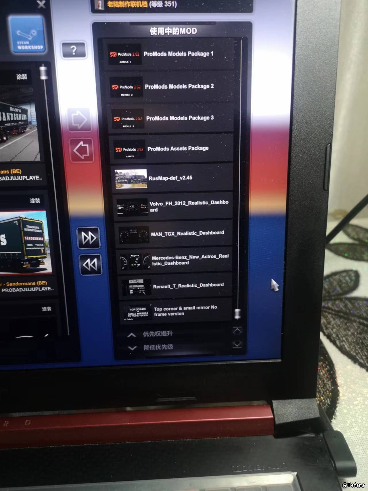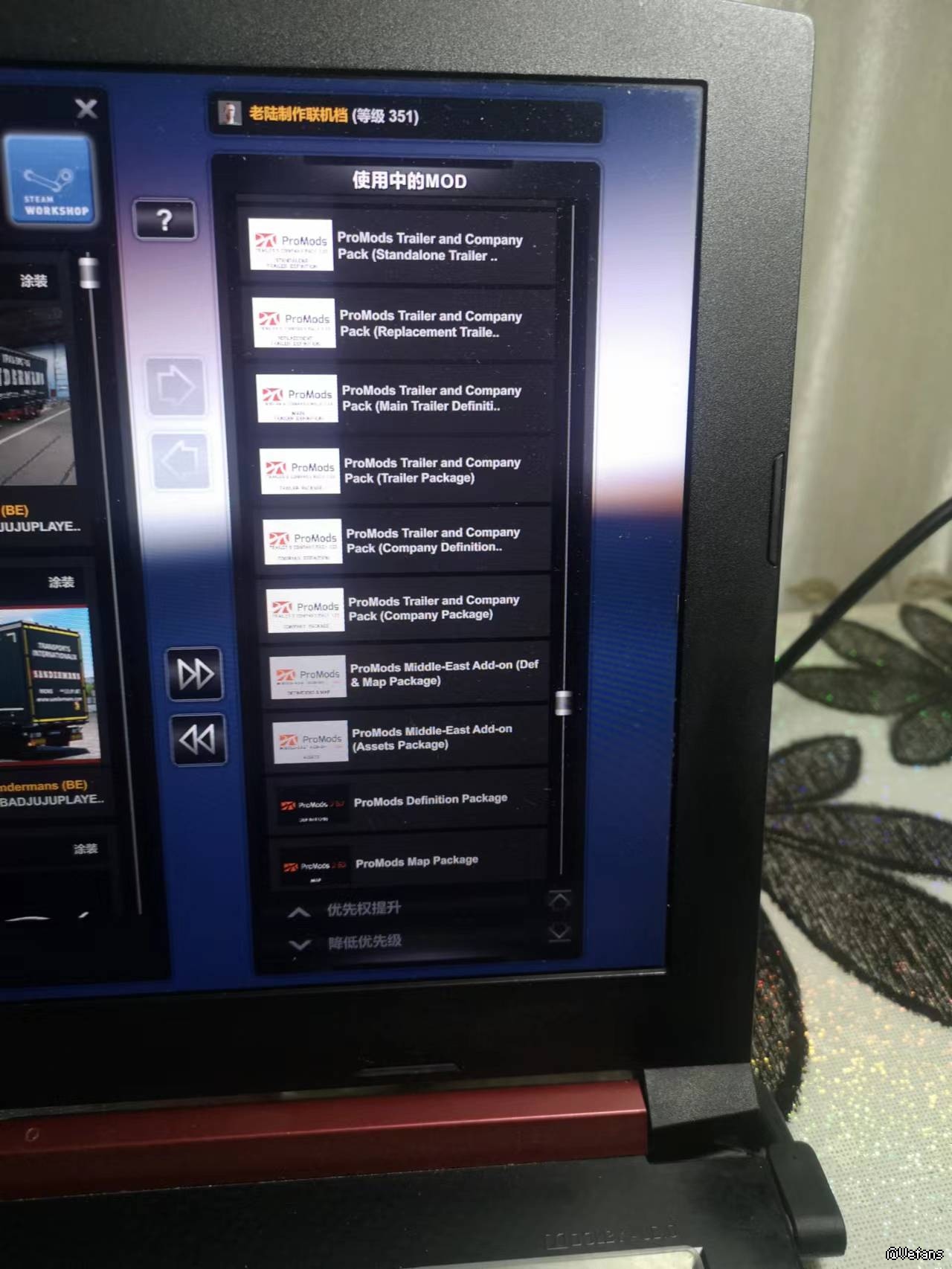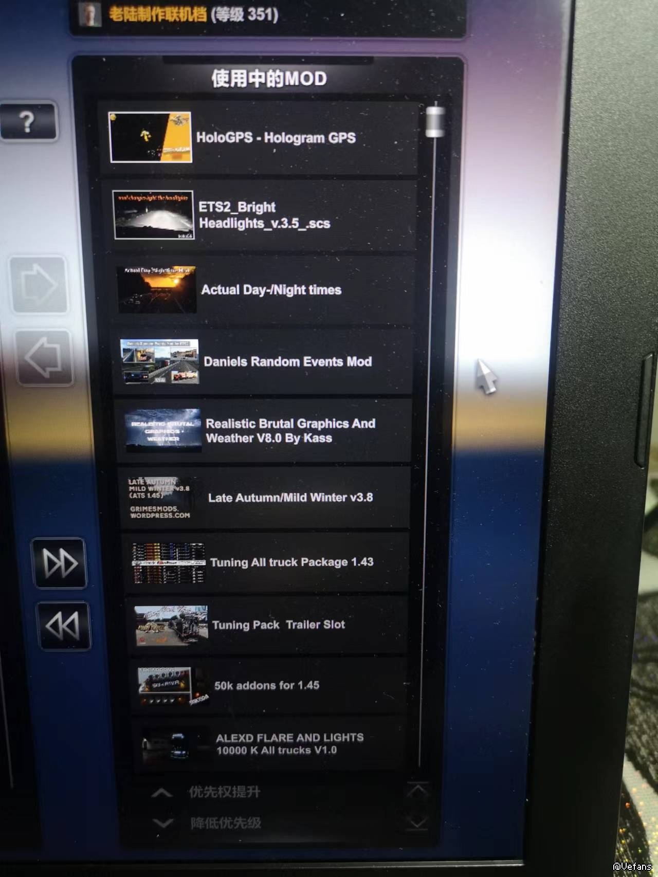 3.这么弱的电脑配就不要加太多模组了【分档玩最好】 i7-8750H +8G内存+1050Ti 你加点画质模组下去把阴影的参数调到16384看看能扛住不,ProMods地图有自己的性能设定你def文件选择什么的?