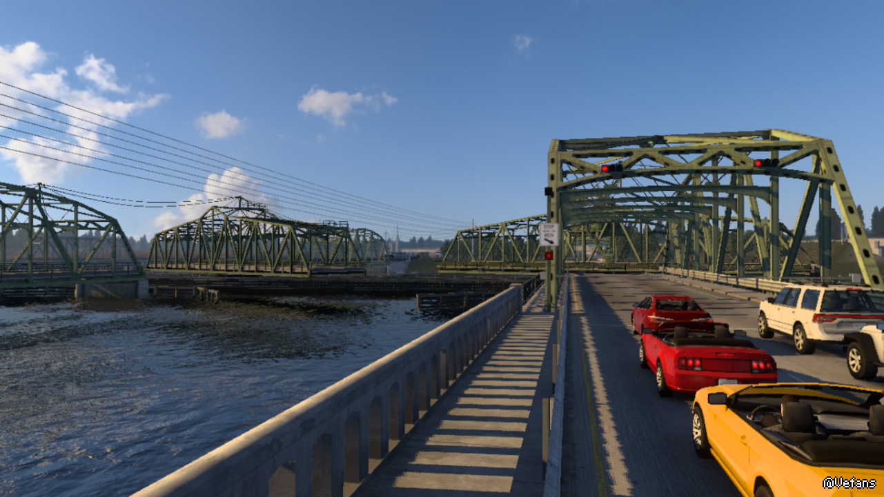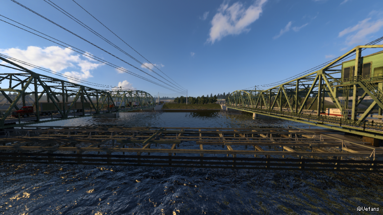 中途大桥可以旋转的,等待船过去
