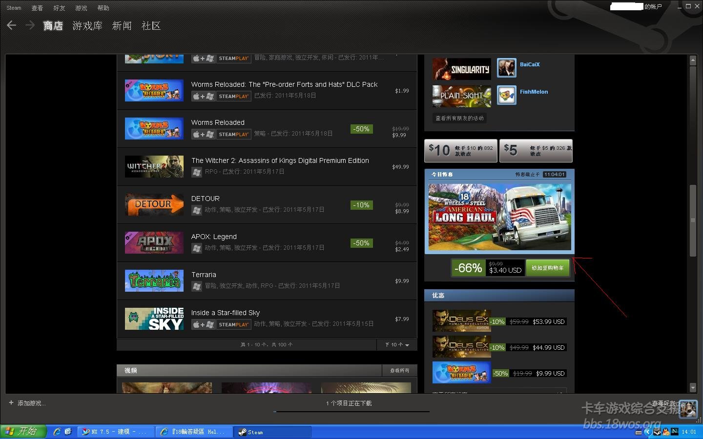 [長拖 ALH] STEAM 数字下载平台 《18轮美国长拖》打折后3.4刀,果断拿下