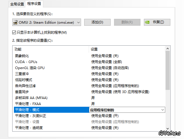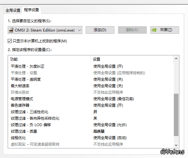 这个软件让我觉得很画面难受,而且在设置界面会花屏,又翻了翻论坛,单独给游戏设置我设置部分感觉有所改善了,但还是远处的电线成锯齿状,请大佬们推荐下win10抗锯齿的设置,不用考虑带不带得动的问题