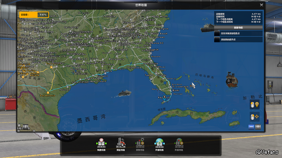 2.因为与咖啡的地图背景兼容,所以我抛弃了原有的地图背景,原有地图背景是存在BUG的。如果不喜欢咖啡MOD把距离,时间等那个对话框放在你的方向盘上,那么可以用改到上面的MOD,需要的可以留言。(要放在咖啡MOD上面,第一张截图里可以看到)
