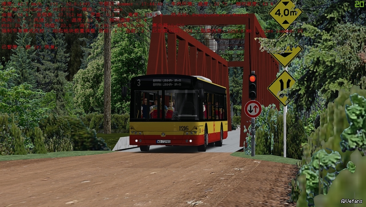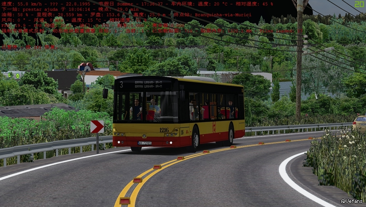 OMSI暂停的情况下默认降到20fps 边开边截,掉沟里警告