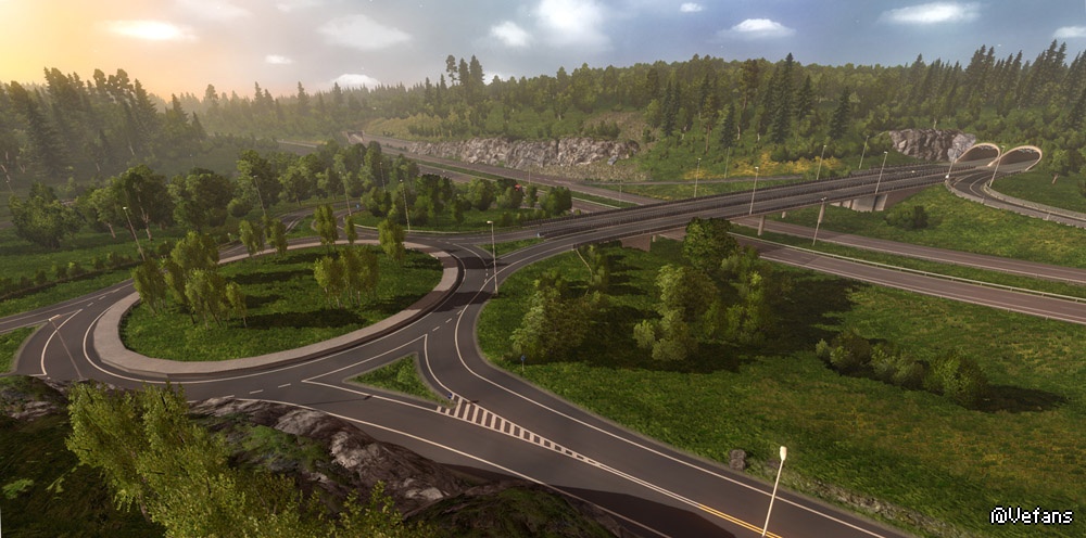 新的改动包括有大量特点,比如新的高速路交叉会合点,十字路口,每边有额外车道的新道路类型,这在现实中也是常有的。我们主旨是确保它们在感官上接近真实的斯堪的纳维亚。