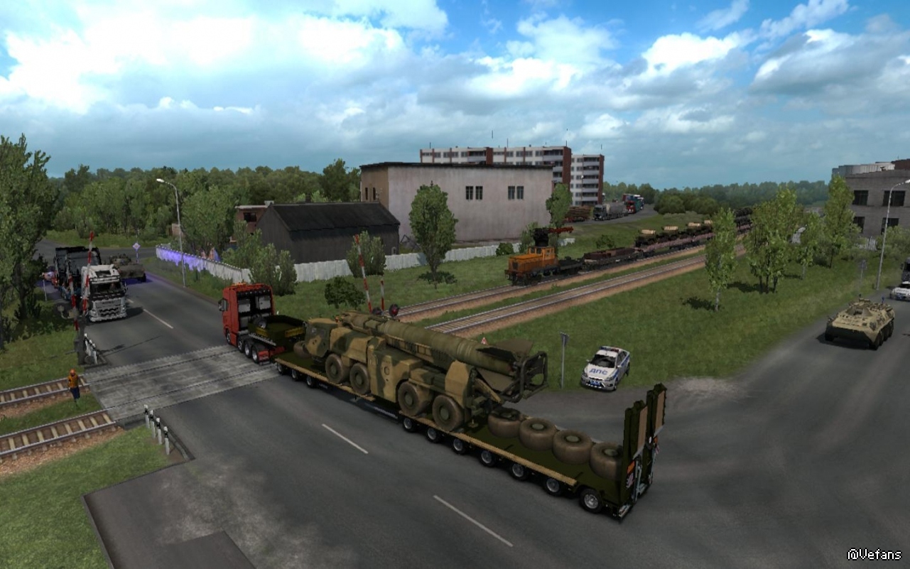 The mod used military models from the mod: "Pak trailers with military equipment" Author: Jazzycat.