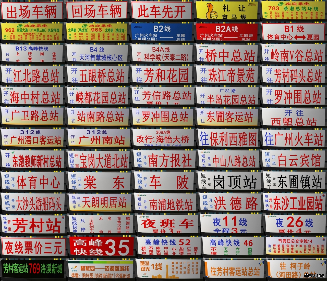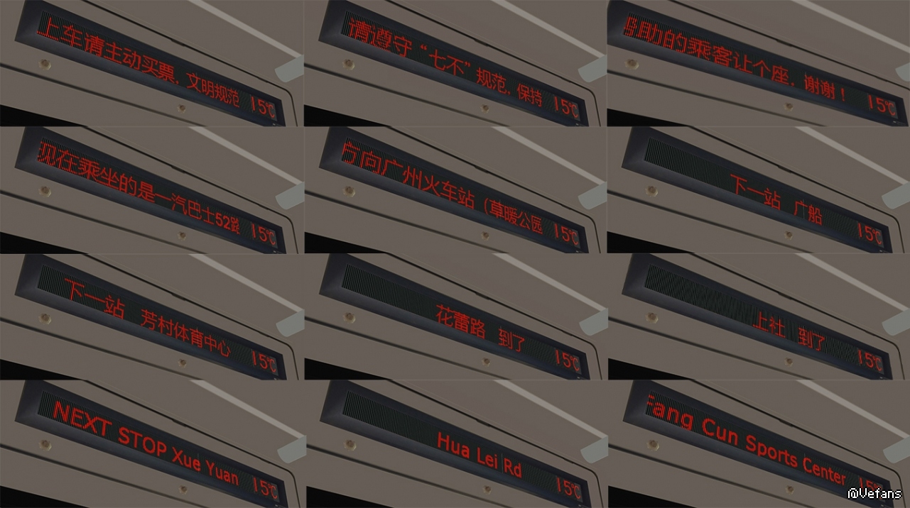 【简介】为广佛地图1.7版本制作了自己瞎捣鼓的SWB6100V5车辆头牌、腰牌(固牌和电牌两个版本)、内走字屏及车前方向牌……