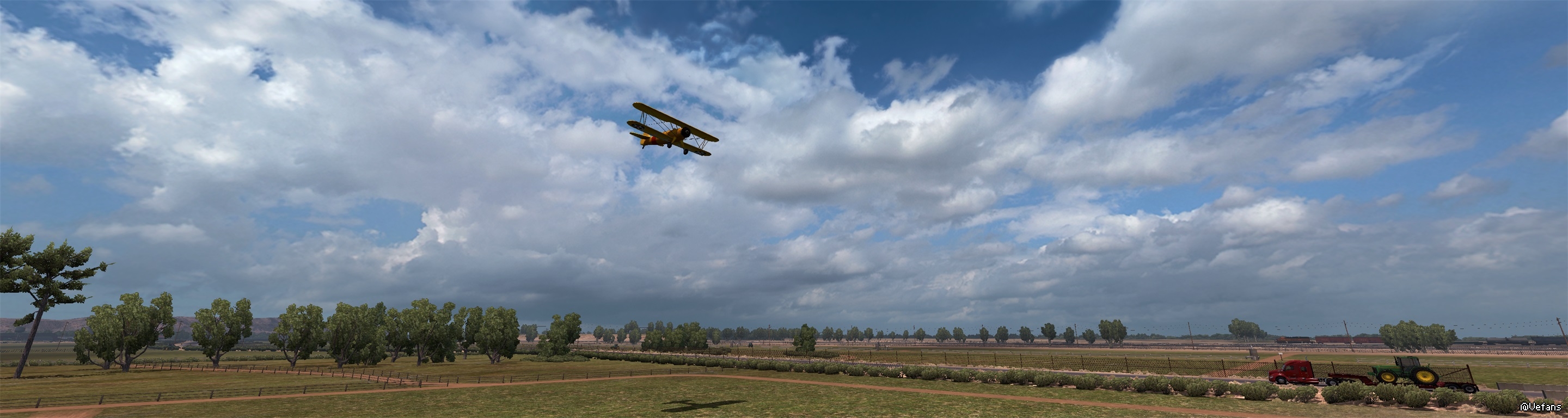 运输拖拉机遇到撒农药的飞机