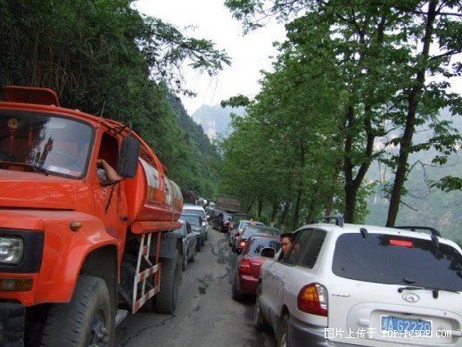 由于这是湖南西部连接重庆的国道,尽管道路是盘旋在悬崖绝壁而上,但车流量很大,路面损坏,堵车经常发生。大型车辆司机没胆量和没过硬的技术是不敢走这一路段的。