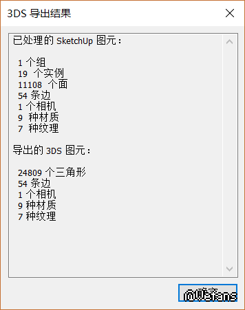 这是SU的导出信息3ds文件已经过Explor3D转换为x文件
