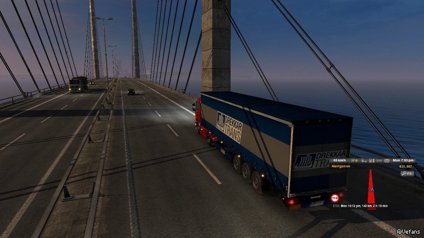 上圖左邊連接 Odense (歐登塞) -- 往 København (哥本哈根) 的橋是:Storebæltsbroen (Great Belt Bridge, 大貝爾特橋 )