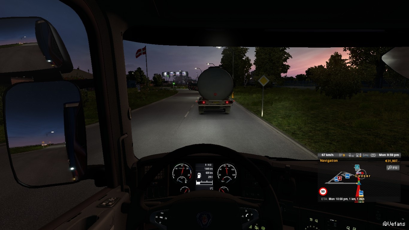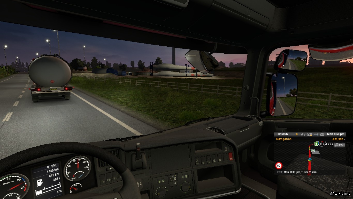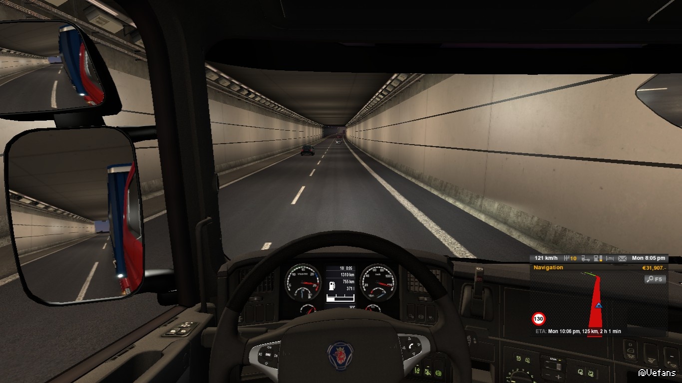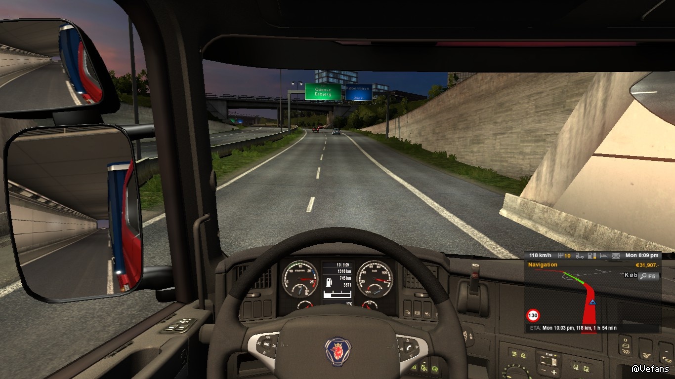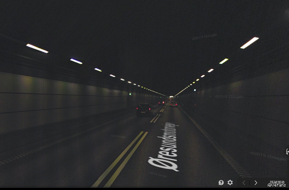 海底隧道段,由東向西,接近往哥本哈根的出口(谷歌街景服務)