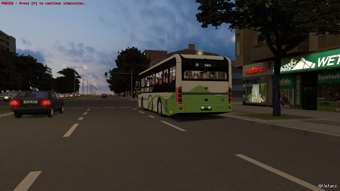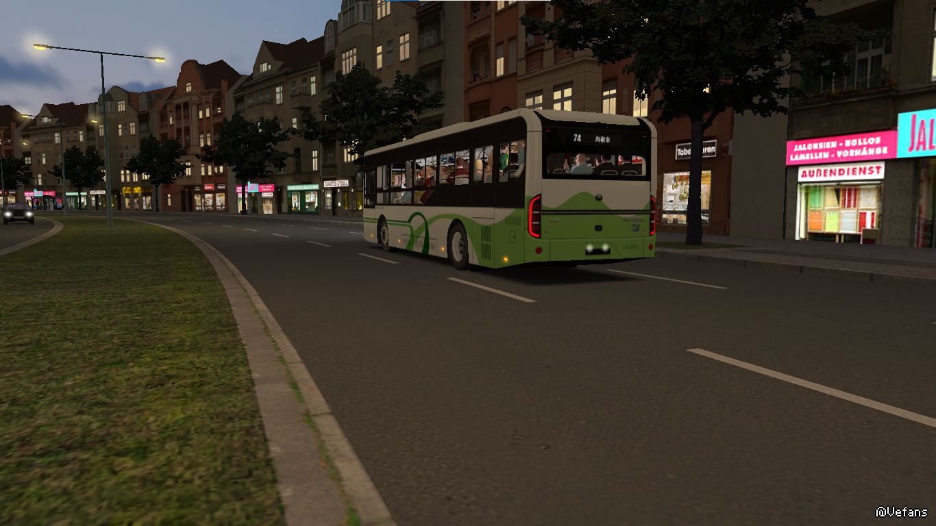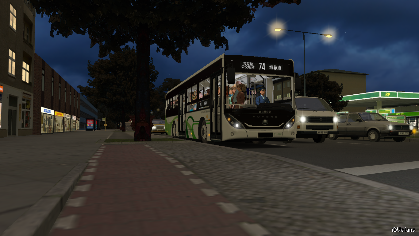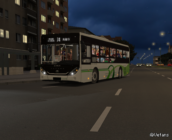 金河市于2021年购买的宇槃客车刷成了上海绿的涂装。在夜幕下,非常美腻