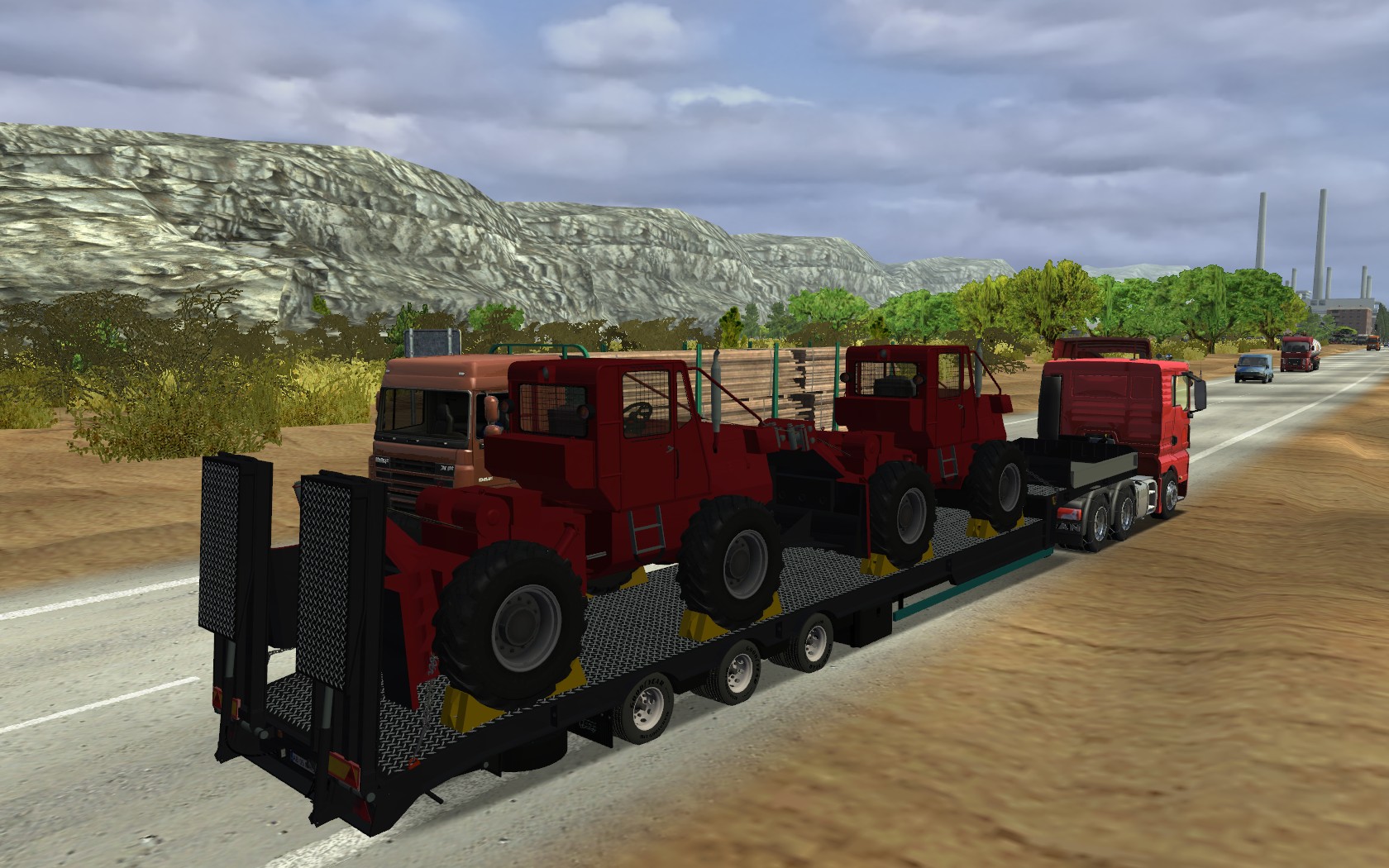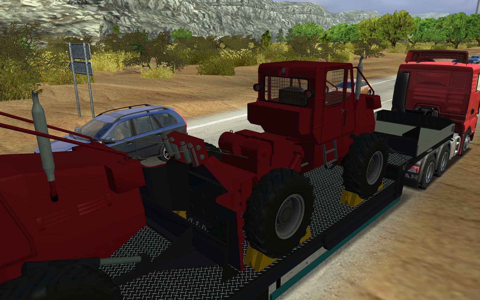 » 大家爽系类:3轴高低板_拉2台红色拖拉机的半挂