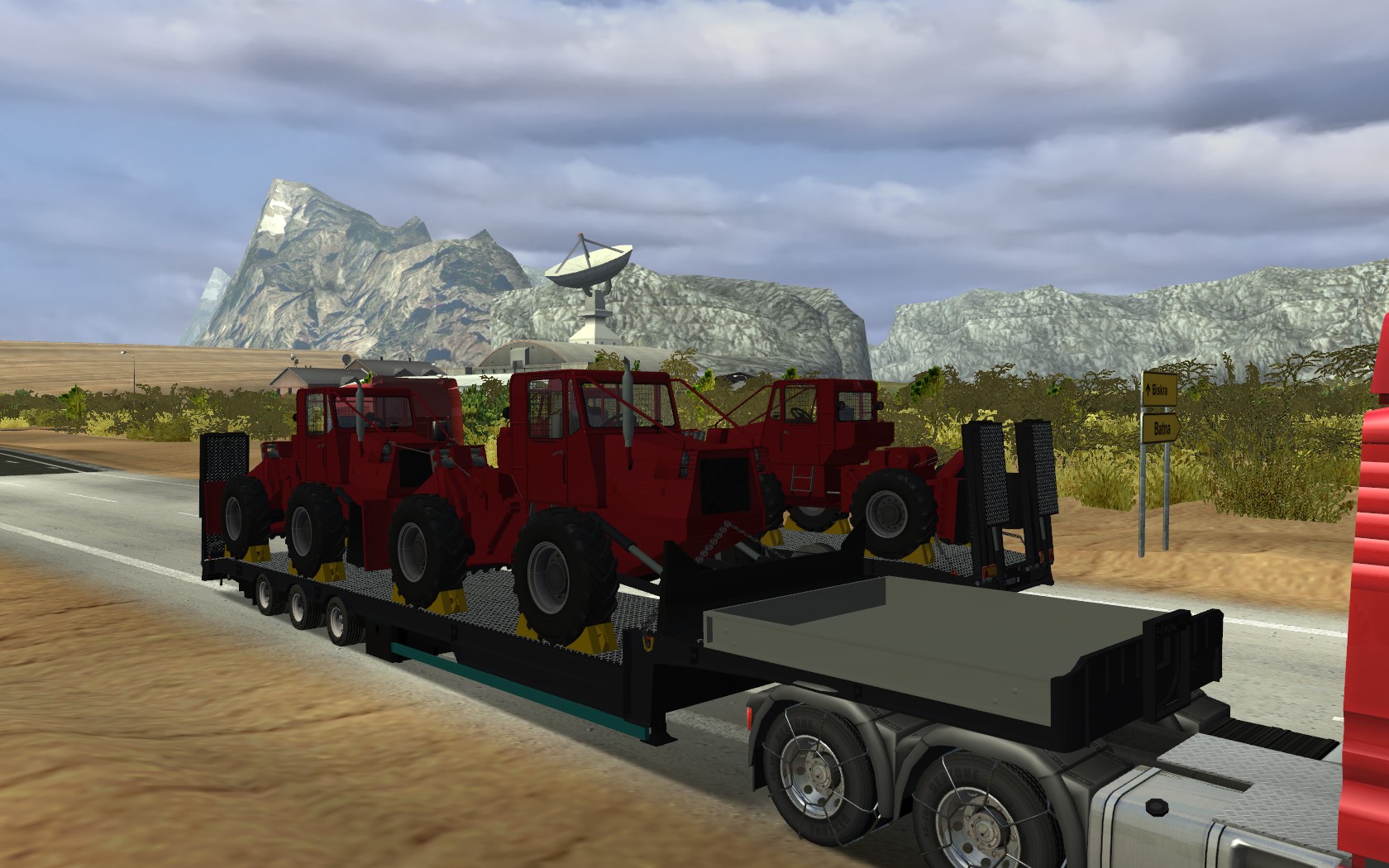大家爽系类:3轴高低板_拉2台红色拖拉机的半挂