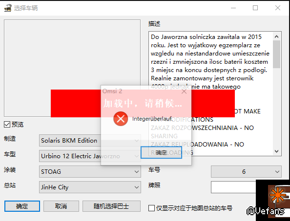 同2号车,把车辆目录里的Regs_Urbino 12.org和Regs_Urbino 12_BVG.org打开检查,如果数字前面有空格的话,把空格删去应该就没问题了