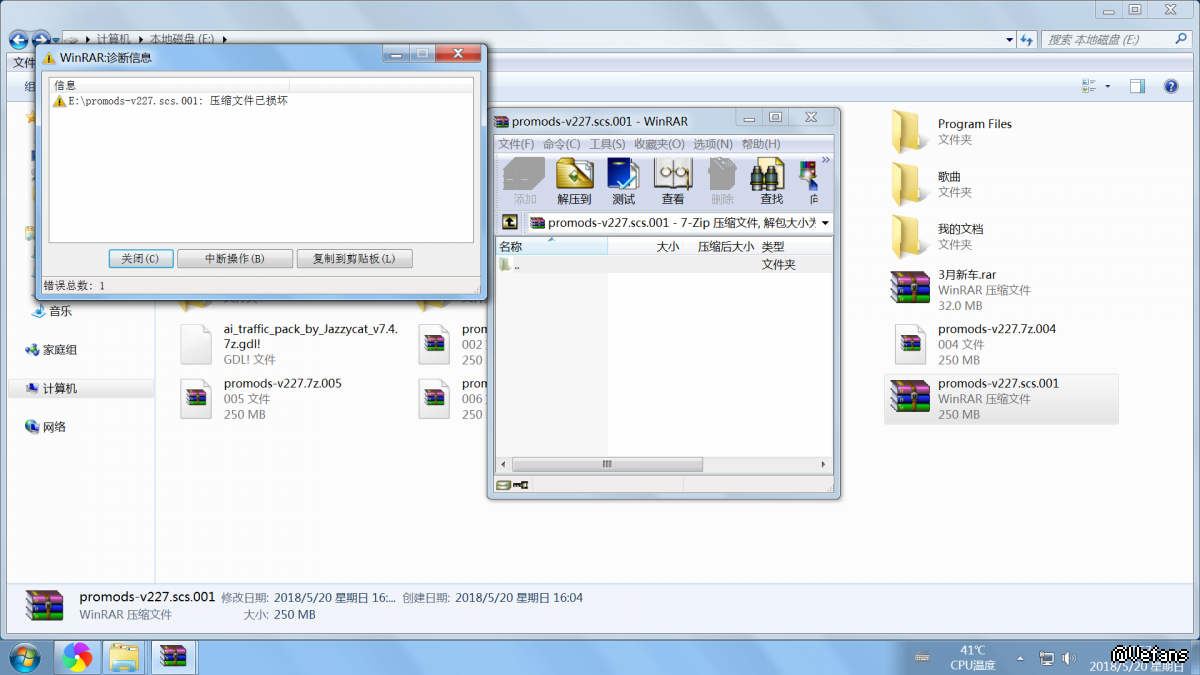 Promods 2.27地图的七个文件用WinRAR和好压解压缩软件都不行.有下载完能解压缩的朋友吗?