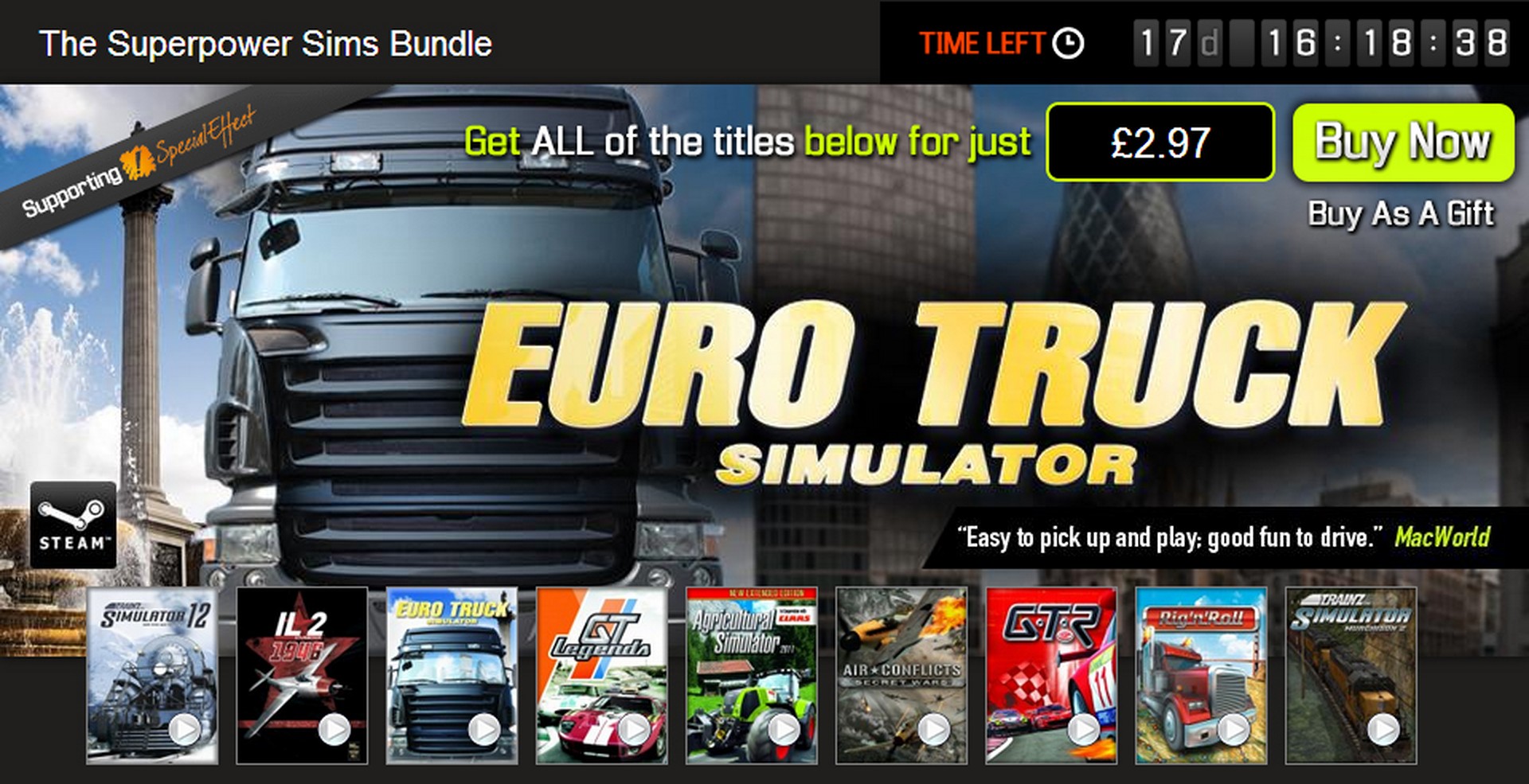 There's massive discount available now for a huge bundle of simulators - The Superpower Sims Bundle. The bundle includes the original classic Euro Truck Simulator game and many other notable simulators for ridiculously low price. We hope that this can bring in fresh players to the truck sim family, and for some people, it may also be a cheap chance to finally own a legal copy of the game. In addition to getting a bunch of nice games on the cheap, Bundle Stars will contribute to SpecialEffect charity from each sale made.