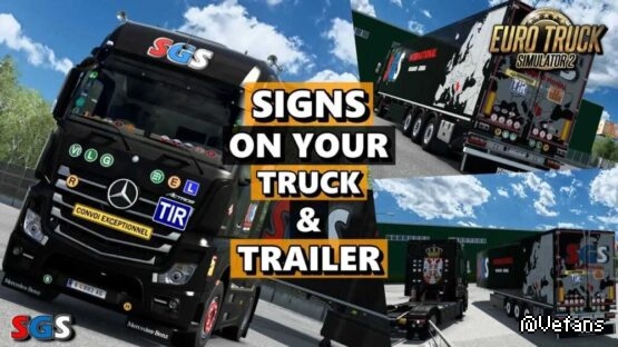 The mod is represented signs marking trucks in different categories country codes, speed limit, warning, ecology warning and others.