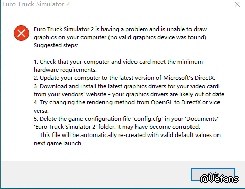 [醉了] 先根据这对话框写的试试重装DirectX,图像卡驱动,上面几步还不行就删除config.cfg