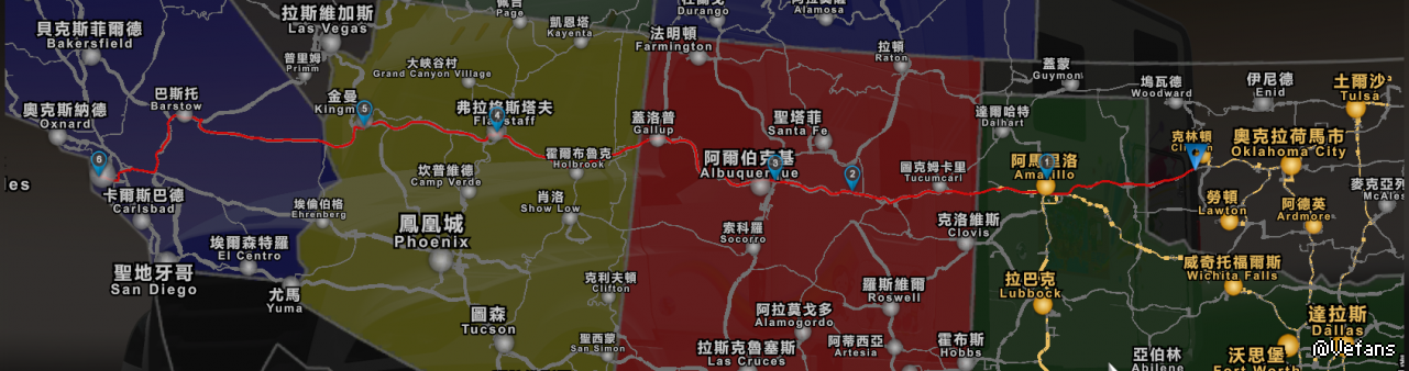 國道66號始建於1926年11月,由芝加哥一路連貫到洛杉磯。途經伊利諾州、密蘇里州、堪薩斯州、奧克拉荷馬州、德克薩斯州、新墨西哥州、亞利桑那州以及加利福尼亞州,全長2,448英里(3,940公里)。我的旅程即將進入新墨西哥州......(下方小照片是真實的66號公路喔!)