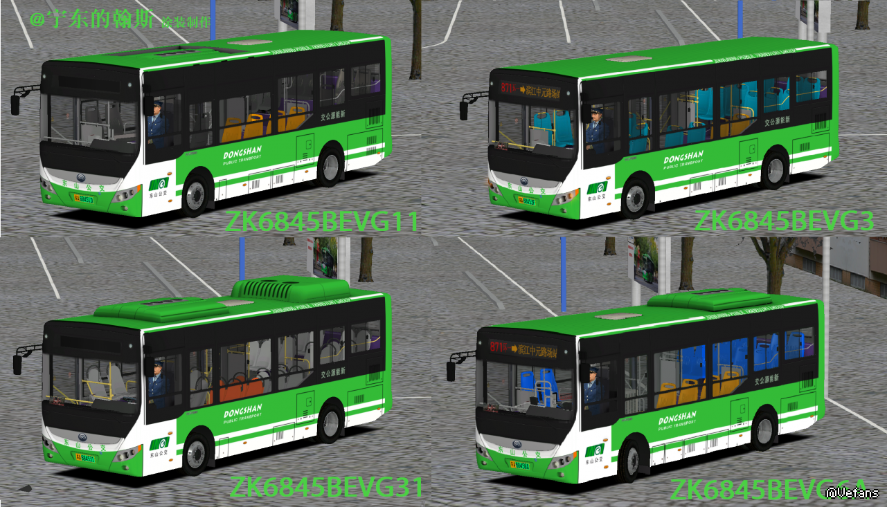 【介绍】YK6845的南京东山公交涂装涂装包内共5款涂装,其中G6A两款,其余车型各一款