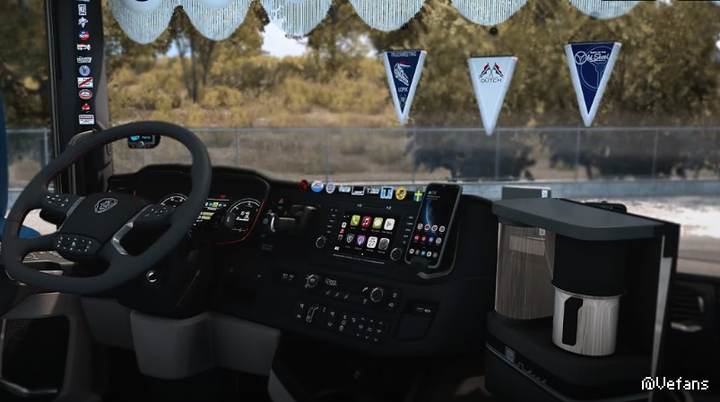 Work with all SCS and reworked trucks (EU+UK) how support the new cabin DLC.