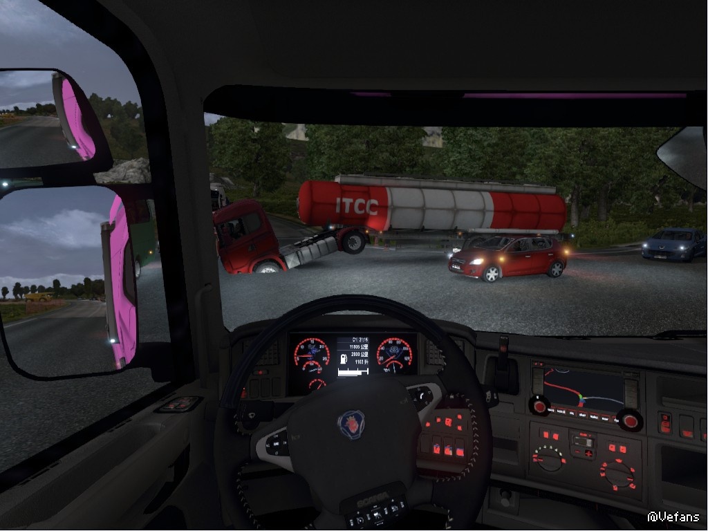 本来咱论坛里有几个成型车不需要涂装的,不需要涂装的成型车就不会有变色BUG,我为了这个烦人的粉色BUG 换过很多车头,开过很多新存档,开着开着没意思把存档都删掉了,开来开去,还是钟情于斯堪尼亚。所以这次又开了个新档加了个地图,专门玩斯堪尼亚,开斯堪尼亚开习惯了,无论是从车型到声音、悬挂、车子的操纵性,个人认为还SCANIA最好,所以我不再在乎什么变色不变色了,粉色车头其实没什么不好,看习惯了也就一样了习惯成自然。这个粉色BUG不是单单对斯堪尼亚而言的,而是欧卡模拟2所有车系品牌都有可能会变成粉色,既然我是非正版玩家,破解版不让老子换涂装,偏偏让我开个粉红车头做伪娘的话,我还不如选择一辆自己最喜欢的车子。就像你说的能开就行了。我相信玩欧卡2的伪娘车头的人占大多数。