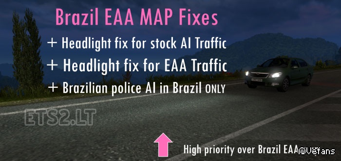 * High intensity headlights from stock AI traffic plus EAA’s Volkswagen Constellation and Scania P changed to default intensity