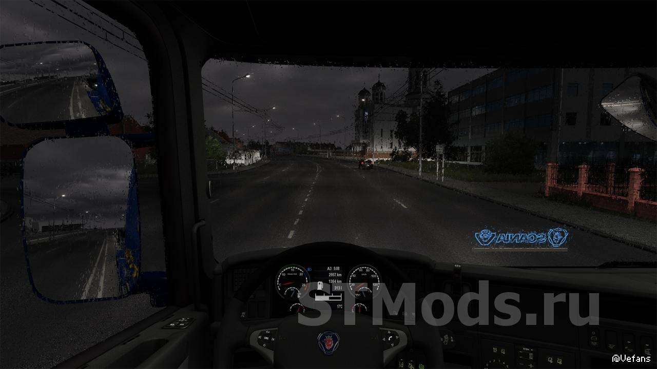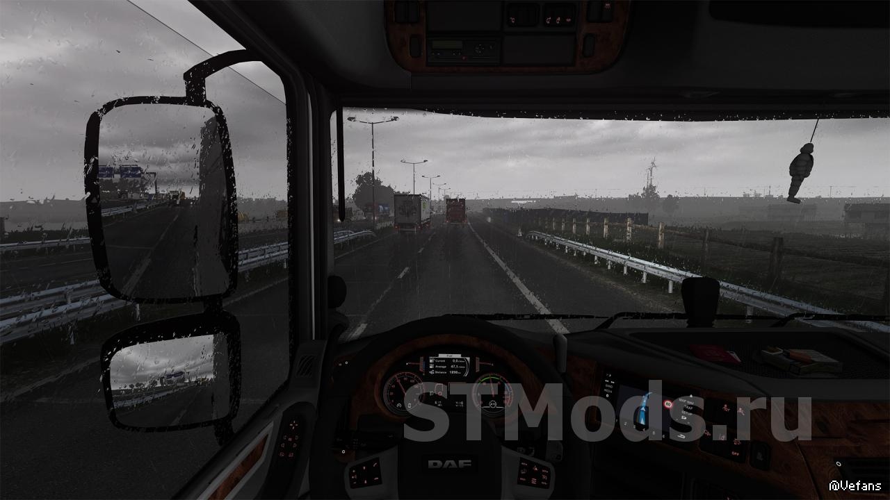 - Реалистичный звук дождя внутри кабины и снаружи кабины грузовика;