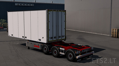 You can find in this pack, Semitrailers 4m/4.4m height, two types of trailer with length 19.6m 4/5 axle. V-Sliders with curtains and side unfolding doors, Double trailers