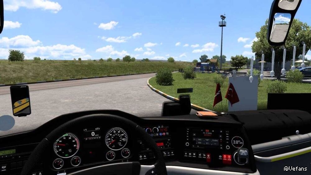 Our mod consists of a 13-meter 2-axle model and has exactly 41+2 seats in the 2+1 seat arrangement used in Turkey. There is a single engine sound and 3 retader sounds in the mod. For game console players, we did not forget the 6-speed transmission, it greets you with a 12-speed option as standard. Digital tachograph Skin template Metallic paint support available Original engine sound Original retader sound Possible digital signage (3 pieces front, back and door side) Constructible cockpit flag Buildable suction cup sign Flashing light system in addition to the fan cover (Optional additional mod required) Reversing camera Middle door camera Multiple seat covering options Multiple floor options Multiple interior light options Multiple vehicle environments can be slotted into pianoblack Multiple in-cabin steering wheel etc. slotting Driver lights (Slotable, comes standard) Vehicle top dovetail and neta satellite antenna can be slotted Vehicle front snow cover