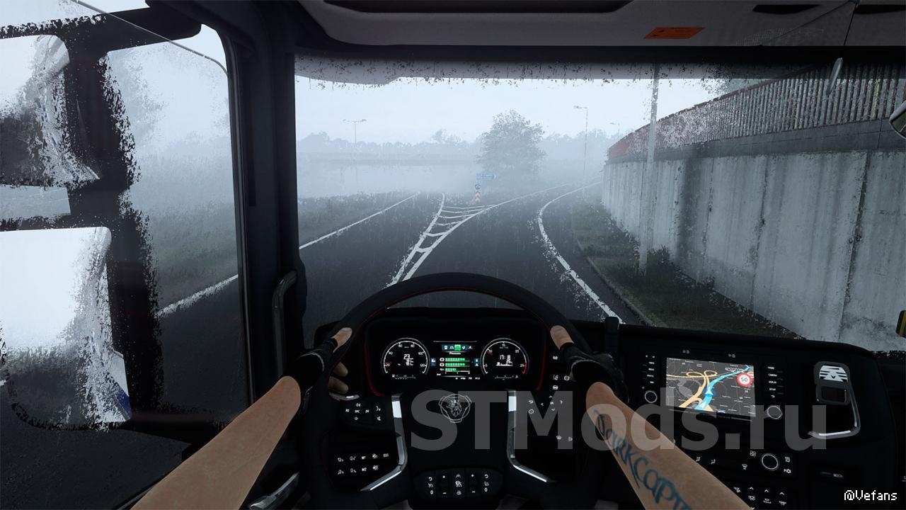 - Эффекты и поведение капель на лобовом стекле и окна были изменены;