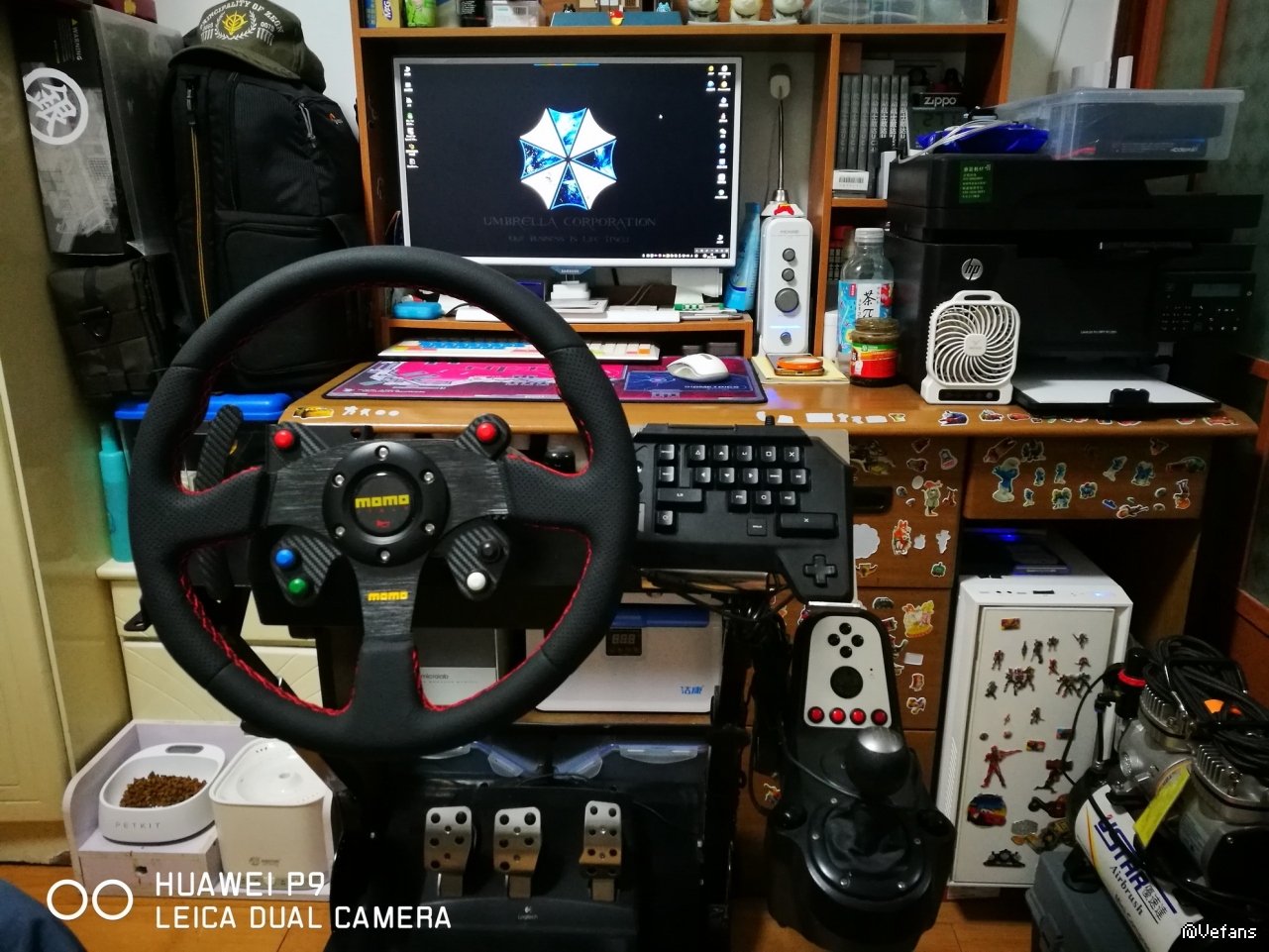 入手HORI K2小键盘一个,以PS4模式接电脑,一下多出来十几个键位,把所有常用按键全部分配,于是可以脱离键盘游戏了,顺手把G27盘体改大些。比较爽。