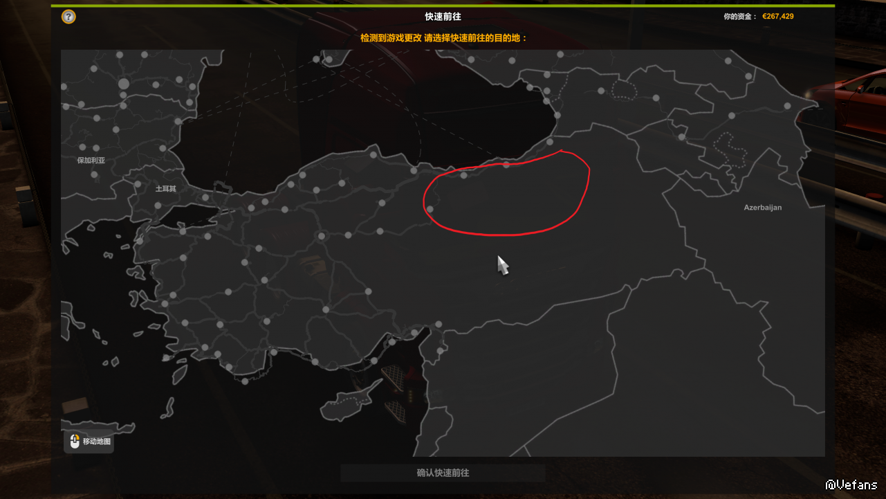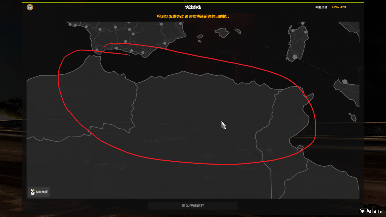 无语 你都说了 图一画圈的是非洲地区!欧洲卡车模拟怎么会有欧洲地区呢 图二画圈的地方属于模组地块