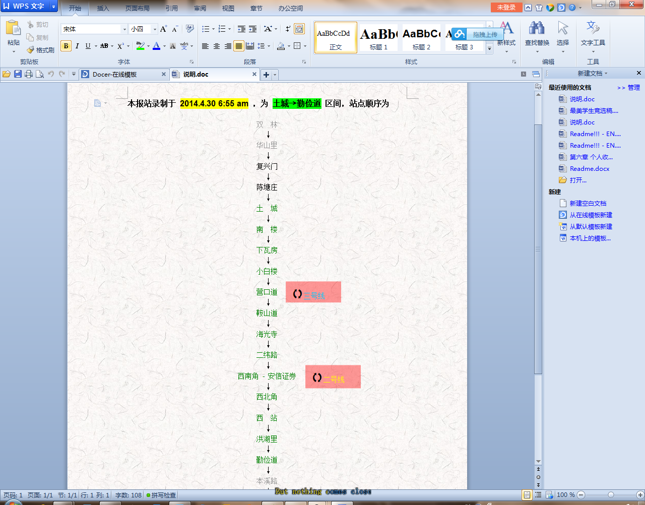 录制于 2014.4.30 6:45 am (在复兴门6:43上车)为 土城-勤俭道 区间,未来可能会加入 复兴门 和 陈塘庄 ,