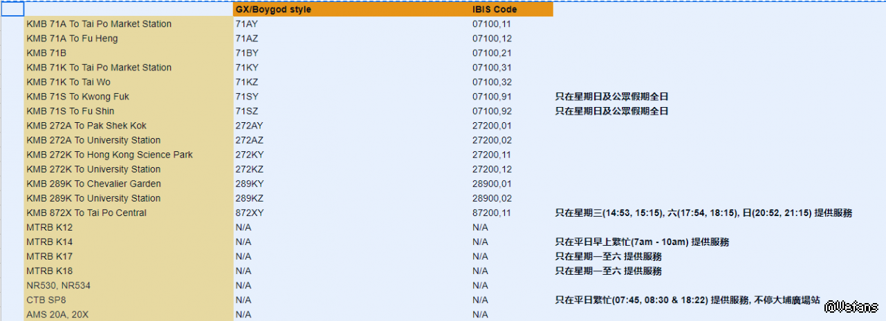 KMB: 71A, 71B, 71K, 71S, 272A, 272K, 289K, 872X