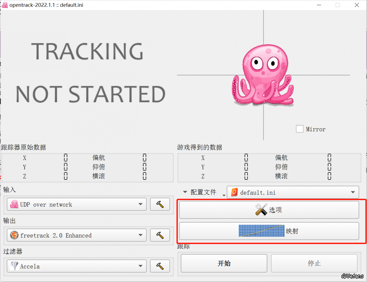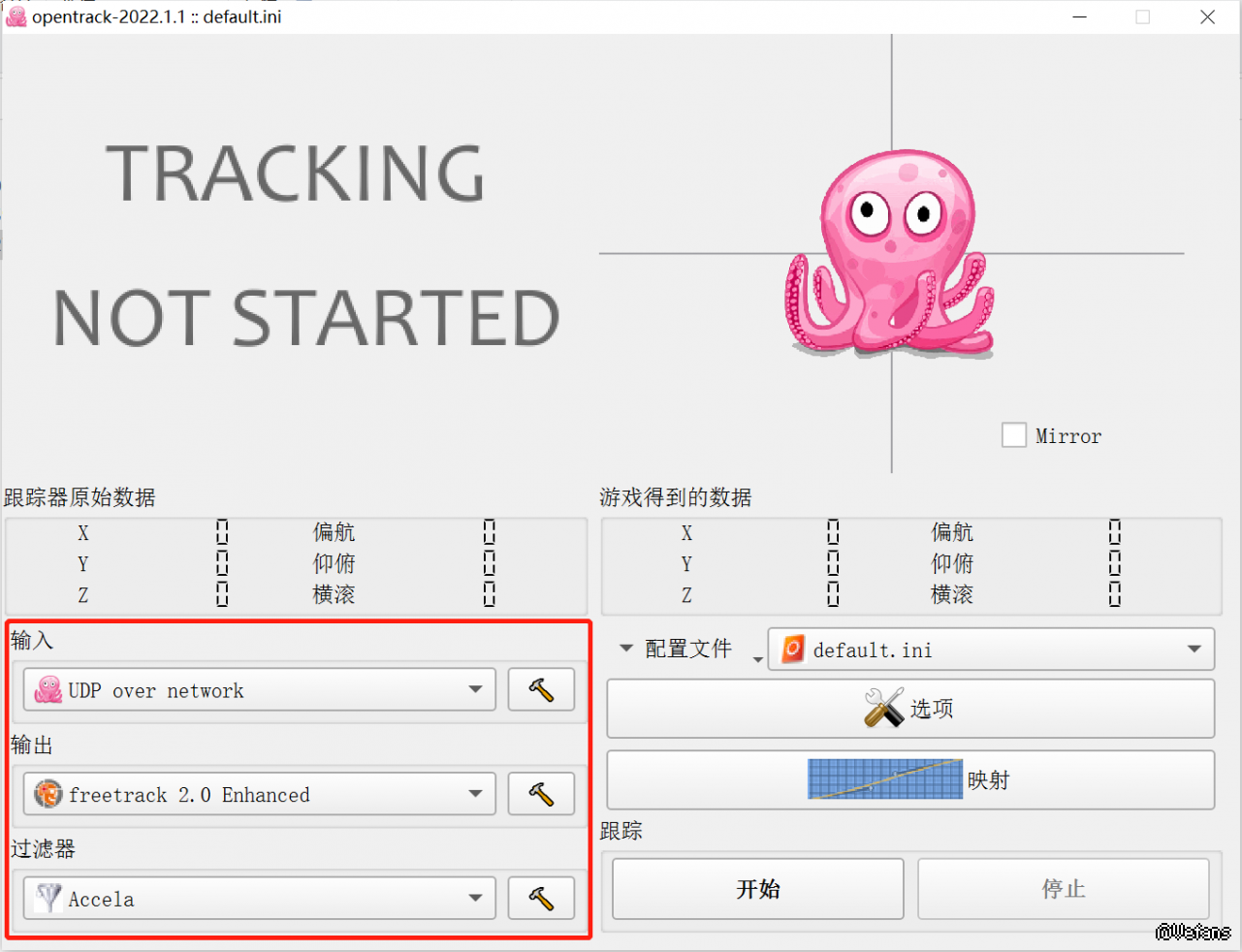 理论上现在打开欧卡2将头瞄的设置打开后,应该就能实现头瞄了,但是有些玩家反映只用FOXTracker没有反映,那么接下来就配合“小章鱼”OpenTrack,基本可以顺利实现头瞄。