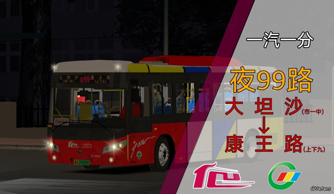 » [OMSI 2/巴士模拟2] 一汽最短的夜线 广州公交夜99路 大坦沙[市一中]→康王路[上下九] POV视角
