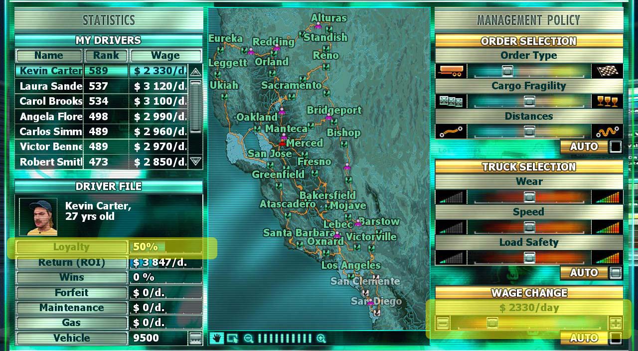 原帖由 SEALs 於 2011-3-16 21:41 發表 TRUCK SELECTION好象是调整雇佣司机在运送货物的过程中求快速高效还是稳妥行事的平衡度``` 应该也可以研究出最佳最有有效率的方案```