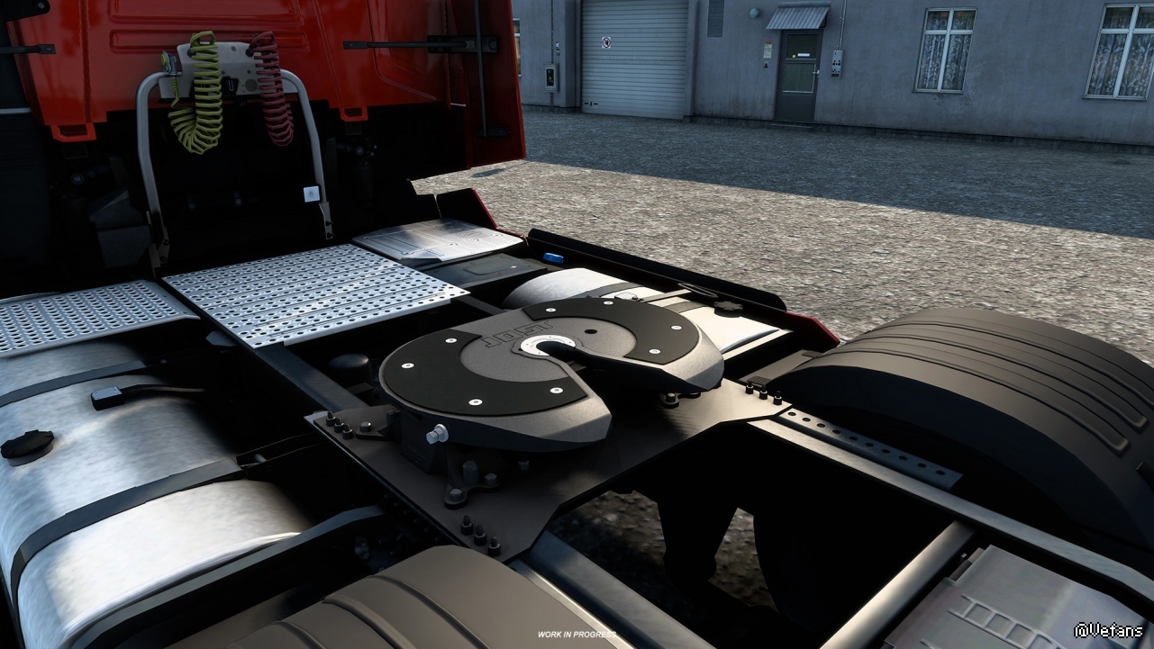 在第二阶段,我们将为 ETS2 中剩余的卡车带来 JOST 牵引鞍座,届时所有卡车都将拥有 JOST 牵引鞍座作为默认标配。我们很高兴能与业内这么一家知名企业合作,将他们强大的核心品牌带到我们的虚拟道路上。