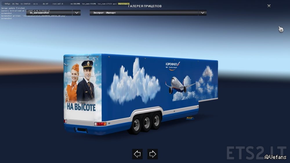 SCS TSM, KHAOS-XX, Georgold CZ, IJ’s Mods, Rommi TZ, TZ_Express, MDModding, Fred_be, GS-Logistic, Expresso Rodovias, Stewowe and Ignition8, Skin “Aeroflot”: Serega 22ru, The authors of some skins is unknown. losevo58-Build, fix, company registration and traffic.