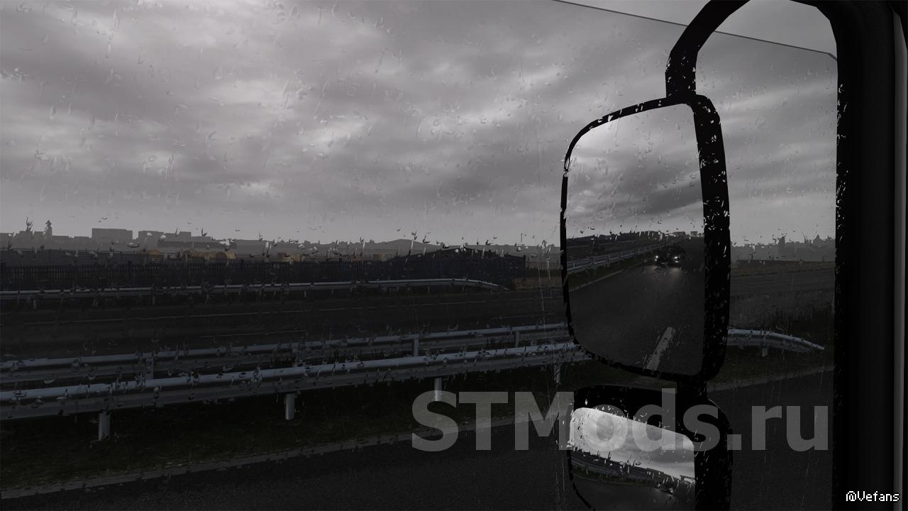 - Реалистичный звук дождя внутри кабины и снаружи кабины грузовика;