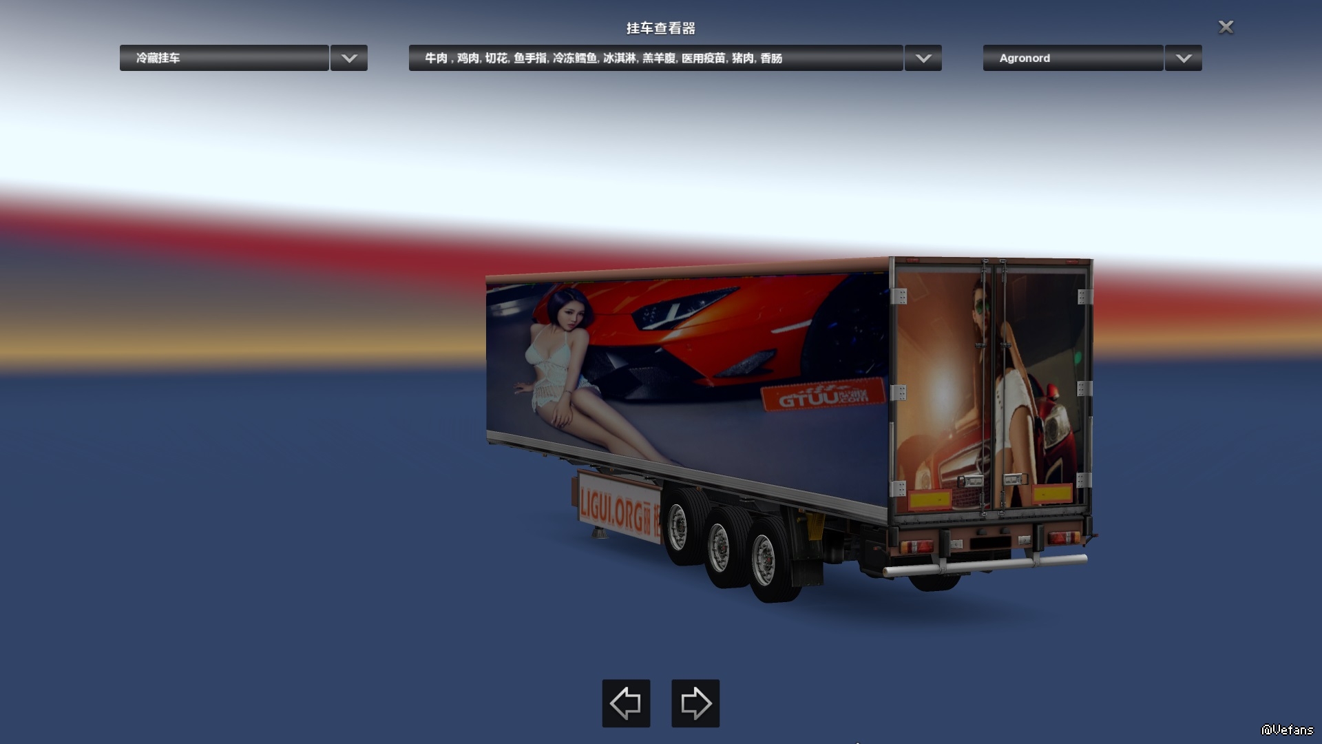 介绍:30个跑车,机车模特皮肤,替换游戏自带30种货物,非独立,AI交通支持