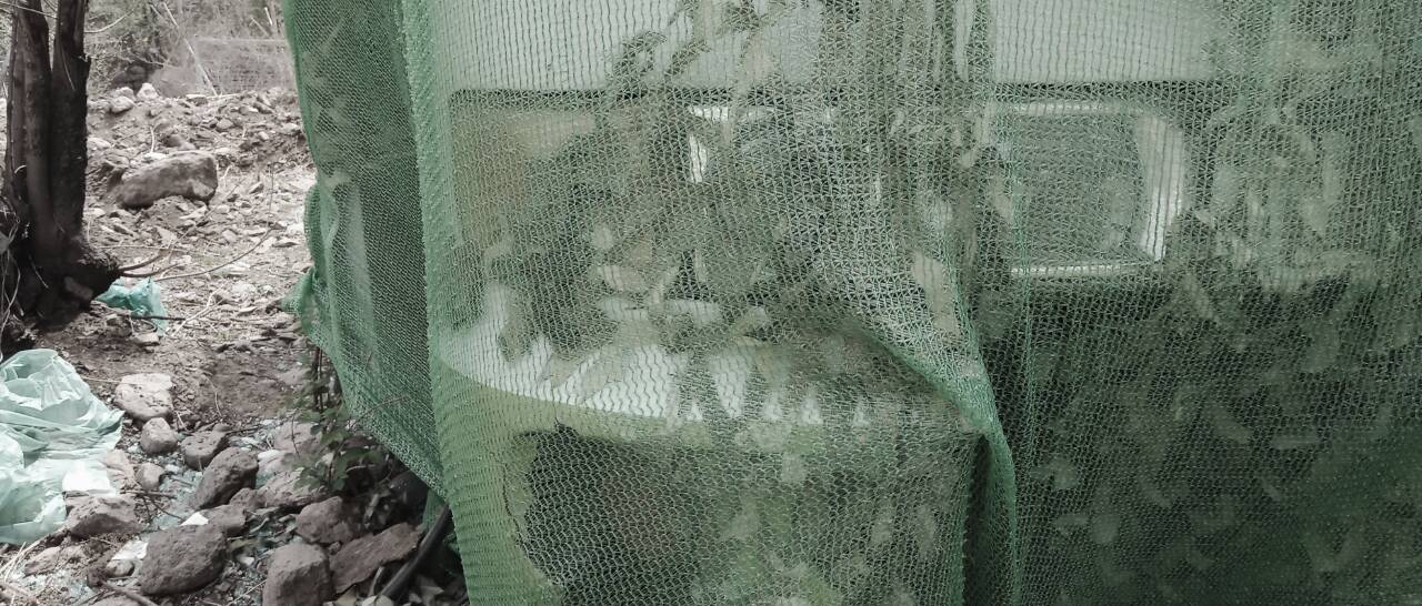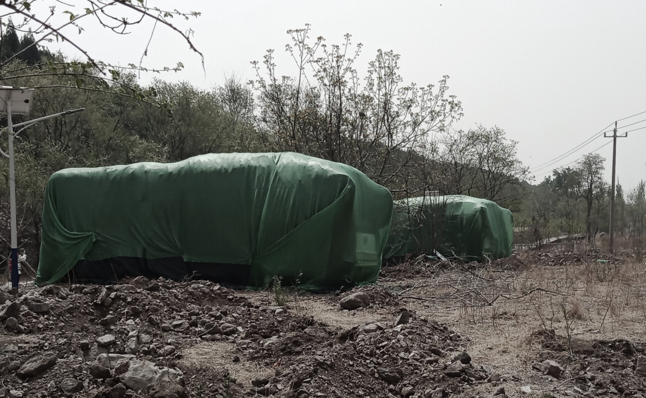 今天去五彩浅山健身,发现两个被绿布蒙着的车,我马上就去那里看了一下。