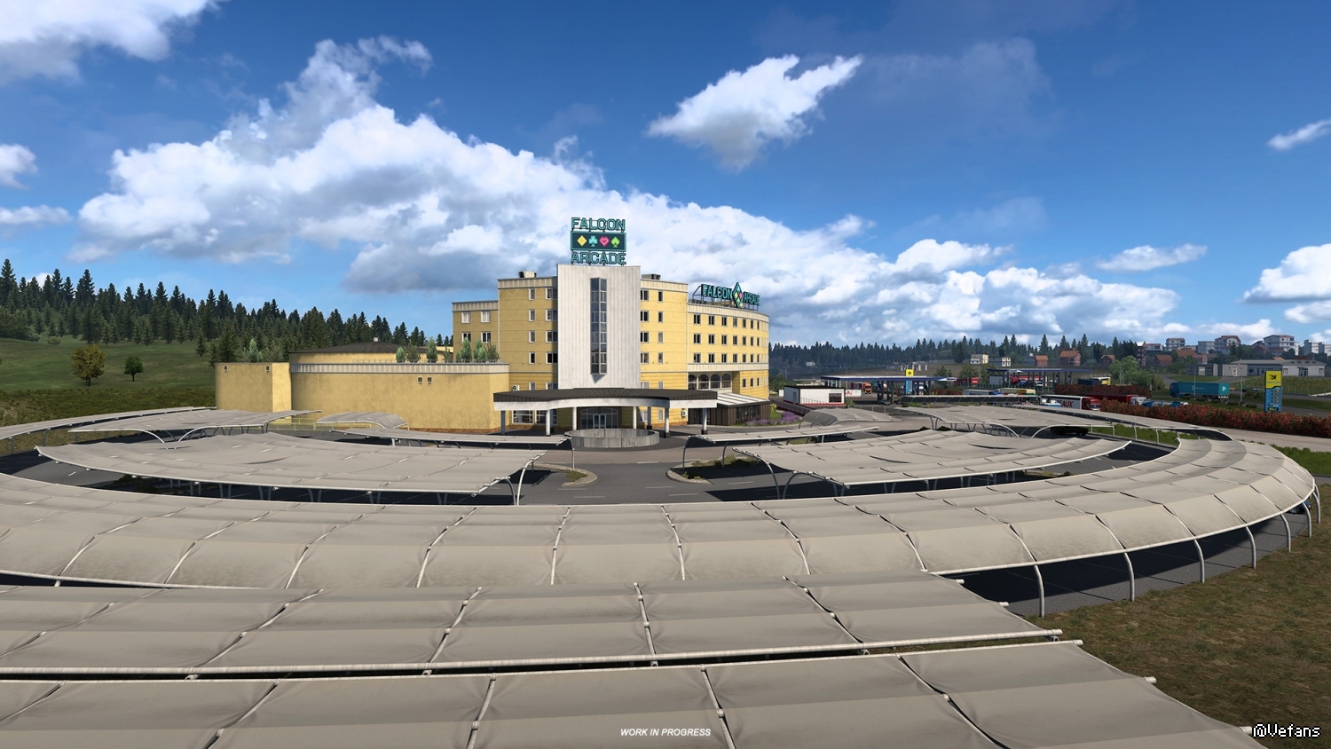 Whilst we don't want to make our players wait for long periods of time in traffic crossing between countries, our team has accurately recreated the crossing area, including the road network and structures built there to handle the busiest crossing points between these two countries.
