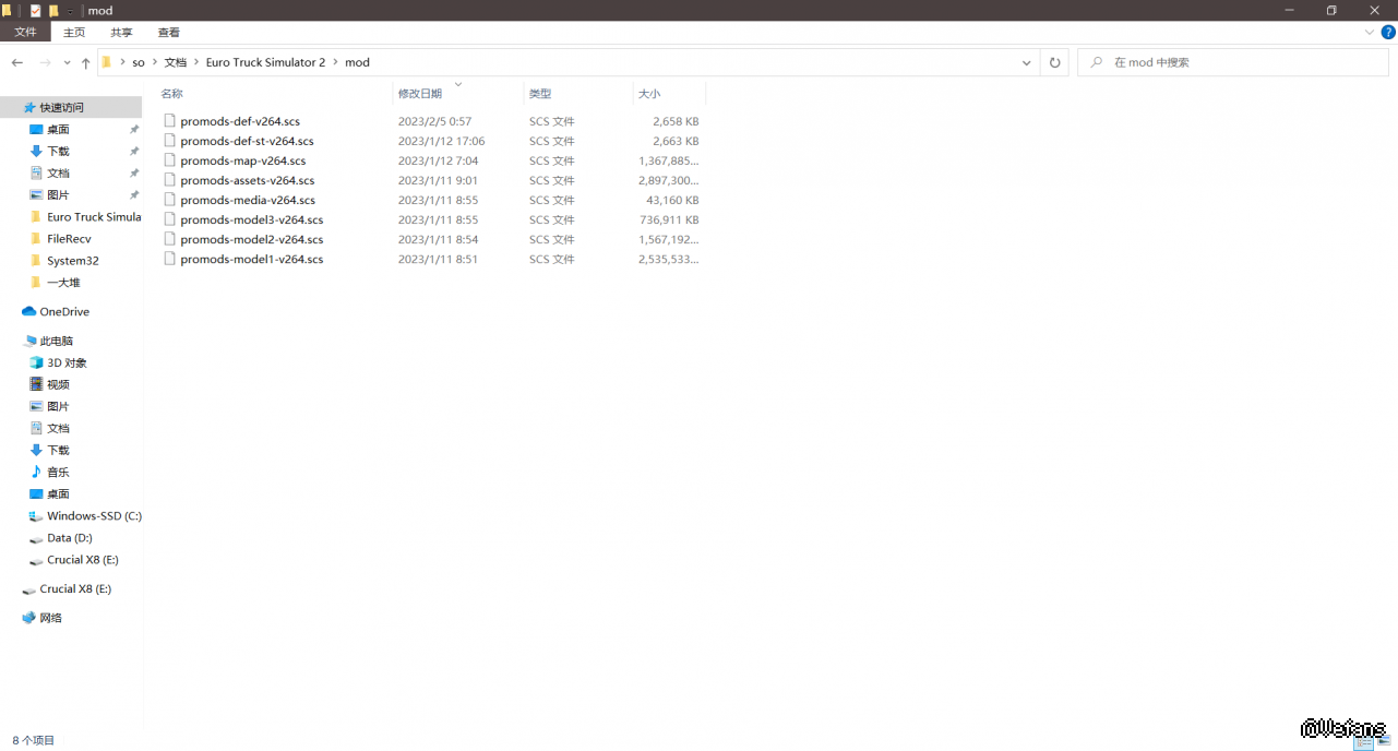 mod文件夹路径不对,点这个文档,然后进入Euro Truck Simulator 2,进入mod文件夹,把文件放到那里去