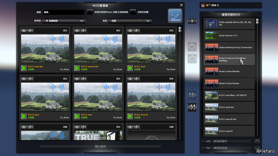 亚洲之路+中华地图+背景图。目前能玩,各地图之间通过港口传输正常。但我想请问一下,为什么我的世界地图看起来不细腻,就是看不到很多密密麻麻的路。最后一张图就是世界地图全貌。然后地图上少数地方有隐隐约约的黑色实线,不是地图连接的虚线。最后就是昨晚加的中华地图怎么跑出世界地图外面了,但鼠标能移过去看得见。如果只用这些MOD能不能解决这些问题啊,谢谢了。